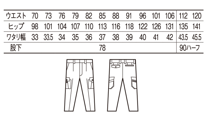 ※股下90ハーフはウエスト112・120㎝しかございません。