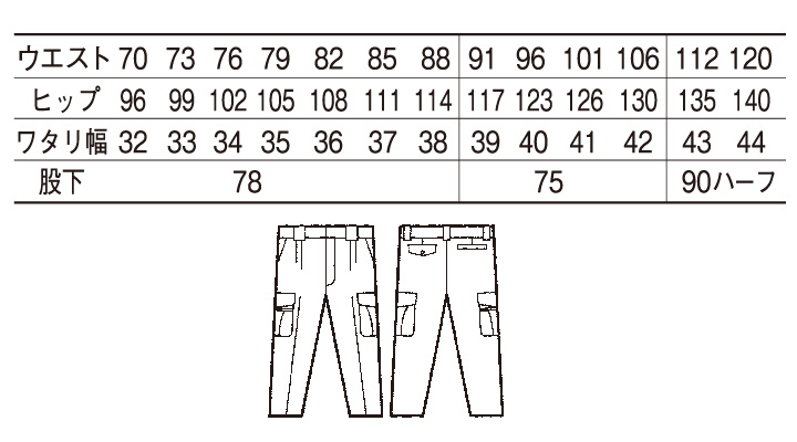 ※股下90ハーフはウエスト112・120㎝しかございません。