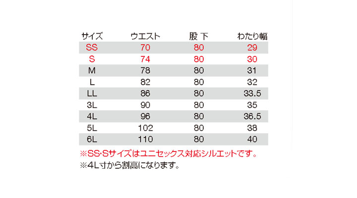 ※SS・Sサイズはユニセックス対応シルエット採用です。