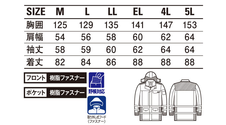 蛍光素材と全方向再帰反射テープで暗い場所での視認性を高め、安全に考慮した防水防寒着です。