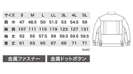 - 比翼型長袖ブルゾン