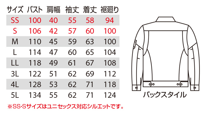 ※SS/Sサイズはユニセックス対応シルエット採用