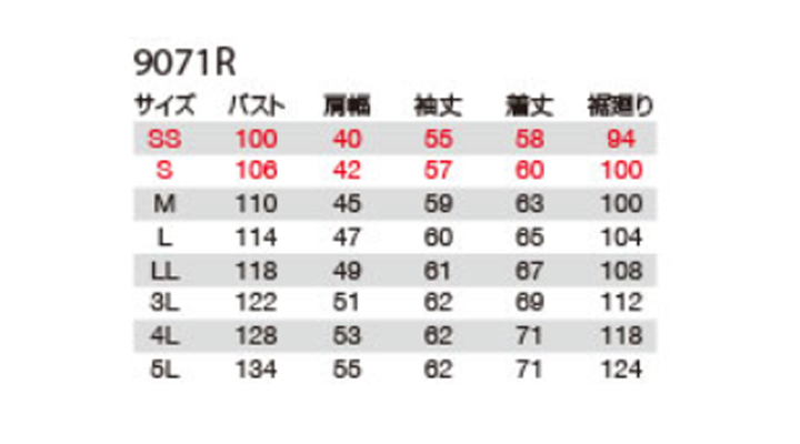 ●サイズ SS〜5L