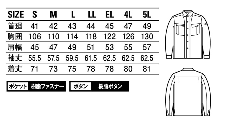 ※EL寸=\300+税アップ、4L・5Lは割高になります。